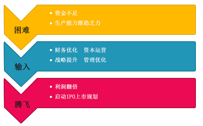 在該公司成長(zhǎng)的過(guò)程中,弘信云創(chuàng)業(yè)平臺(tái)給他帶來(lái)的不僅是市場(chǎng)通路,還幫助解決市場(chǎng)擴(kuò)大帶來(lái)的其它問(wèn)題,例如,戰(zhàn)略重構(gòu)、生產(chǎn)基地選址布局,以適應(yīng)更大規(guī)模產(chǎn)能的重塑管理機(jī)制等等。為解決其因產(chǎn)能擴(kuò)大帶來(lái)的資金瓶頸,云創(chuàng)業(yè)平臺(tái)專家團(tuán)隊(duì)幫助其進(jìn)行資本運(yùn)作。憑借穩(wěn)定的供貨能力和優(yōu)異的產(chǎn)品質(zhì)量,擴(kuò)大與民族終端品牌的合作。2013年該公司借殼上市,成功進(jìn)入資本市場(chǎng),打開廣闊的發(fā)展空間,在資本的幫助下,實(shí)現(xiàn)營(yíng)收翻番。2013年實(shí)現(xiàn)產(chǎn)值12億元,預(yù)計(jì)2014年將實(shí)現(xiàn)產(chǎn)值30億元,利潤(rùn)1.6億元。